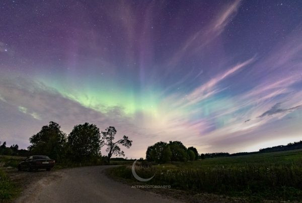 А структурные формы сегодня ночью были ого-го. Тончайшая ледяная пленка в мезосфере Земли отражает только малое количество солнечного света, попадающего на нее снизу, потоки разреженного воздуха медленно разносят ледяные частички в пространстве, появляется флёр, в виде туманной пелены, волны, полосы, гребни и вихри.
